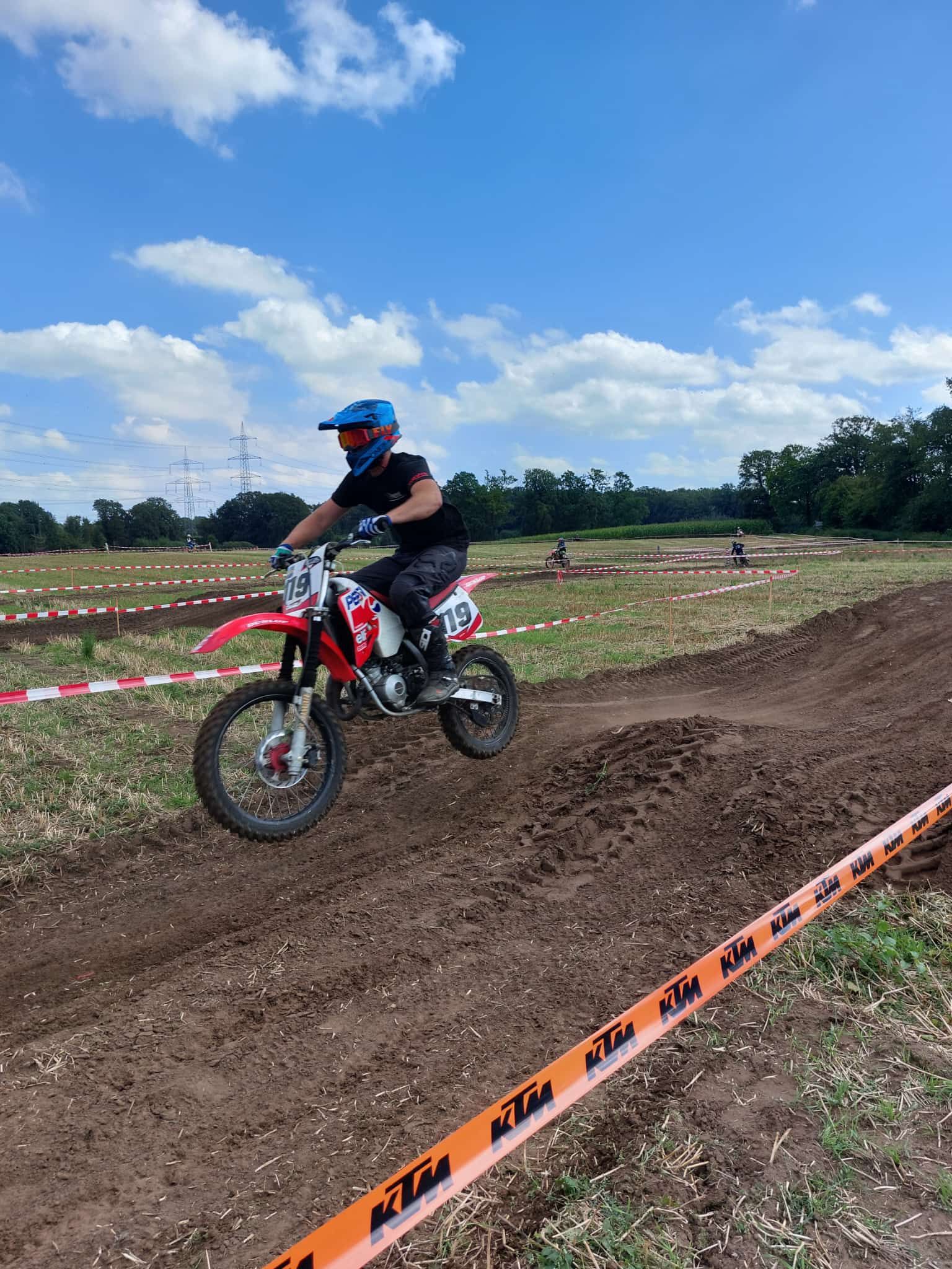 Wie immer auf einem Stoppelacker mit einem abgestecktem Rundkurs von etwa 1000m Länge. Mit flachen Sprüngen, Spitzkehren und langen Geraden.